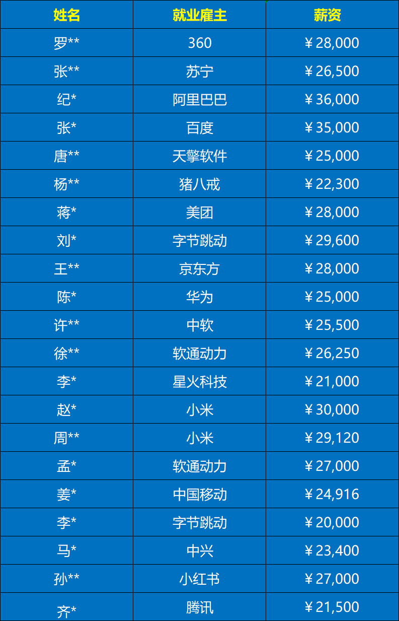 历届学员就业薪资情况